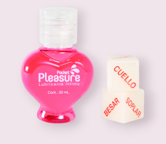 Lubricante Caliente Pocket Pleasure con dados 20 ml Frambueza