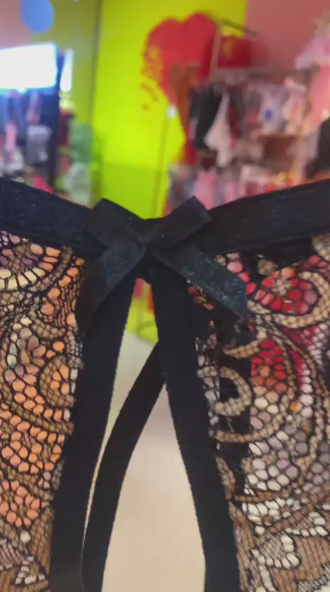 Tanga Abierta Mariposa Negro Dorado